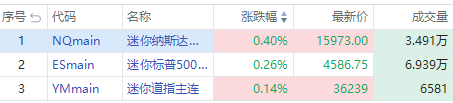 今日美股三大期指盘前再度走高,截至发稿,纳指期货 $NQmain 涨0.40%,标普500指数期货 $ESmain 涨0.26%,道指期货 $YMmain 涨0.14%。