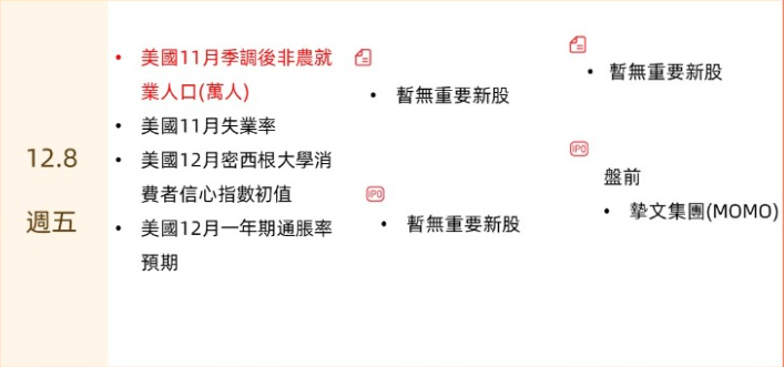 21:30 美国11月非农就业人口变动季调后、美国11月失业率