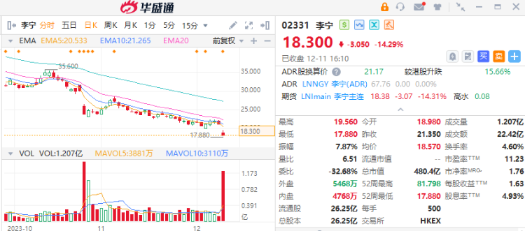 12月11日讯,对于今日李宁股价大跌,李宁相关负责人回应称,李宁公司的国际化战略布局正处于积极发展阶段。