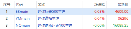 华盛资讯12月11日消息,美股三大期指盘前涨跌不一,截至发稿,纳指期货 $NQmain 跌0.06%,标普500指数期货 $ESmain 涨0.03%,道指期货 $YMmain 涨0.04%。