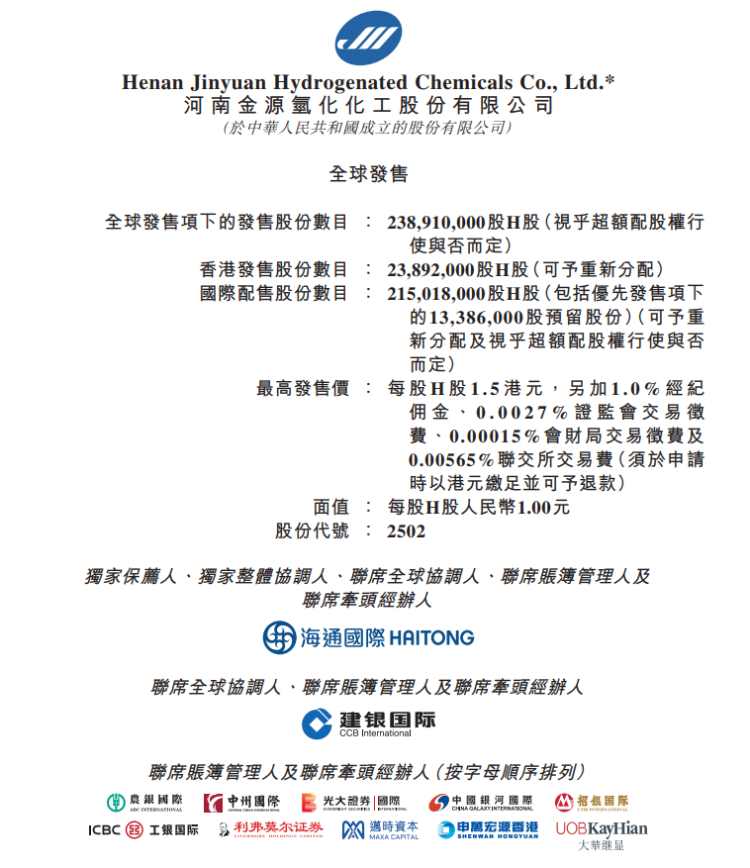 假设超额配股权完全未获行使且发售价每股发售股份1.3港元,全球发售净筹约2.69亿港元。