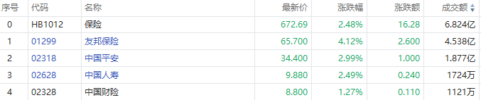 带动今日港股金融、制药等对利率敏感的板块集体飙涨,截至发稿,友邦保险涨超4%,中国平安、中国人寿涨近3%,招商银行涨超2%。
