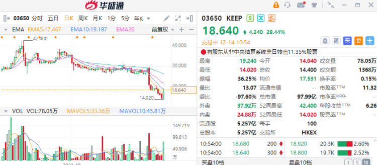 12月14日讯,港股在线健身龙头KEEP大涨32%,截至发稿,涨29.44%,报18.64港元,成交额1368万港元。
