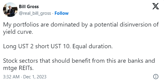 不过,这两位“债券之王”都同意的一件事是,收益率曲线应该不会再倒挂了。格罗斯曾表示,他预计这主要是因为短期美债收益率的下降。