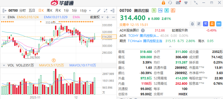 腾讯急弹重上310港元,资金积极吸纳,留意中期购 $20417.HK
