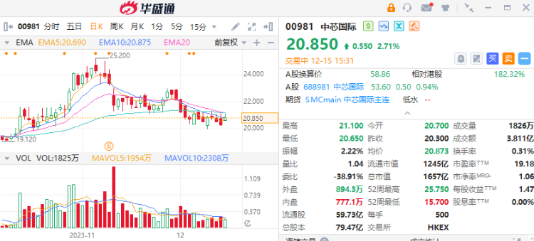如看好股价于20元有支持,可参考中芯中短期认购证 $20046.HK ,行使价23.05元,2024年2月到期,实际杠杆8.2倍。