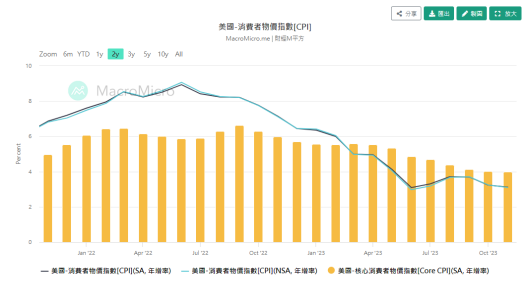 美国劳工部公布11月份消费者物价指数CPI 按年上升3.1%,符合预期,更比上月3.2%略低。并创近5个月低位。按月上升0.1%,稍高预期及上月无升跌。扣除食品及能源的核心CPI按年上升4%,符合预期及上月同升4%。按月升0.3%,符合预期,但小幅高于上月升0.2%。数据反映当地通胀轻微放缓,也相信联储局无必要收紧货币政策。