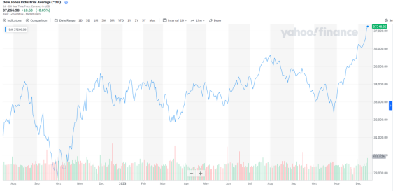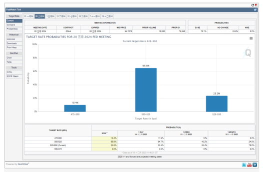 主席鲍威尔在议息会议后声明,目前利率应处于高位,再加息的可能性不大。更在会议上研究减息机会和步伐,再暗示明年可能有3次的减息机会。减息幅度远超市场预期。言论刺激美股大幅急升至历史新高。