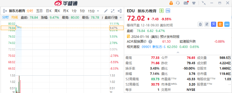 新东方教育盘前大涨超9%,消息面上,俞敏洪任命董宇辉为新东方教育科技集团董事长文化助理,兼任新东方文旅集团副总裁。另外,东方甄选17日公告,该公司解除孙东旭行政总裁一职,公司董事长俞敏洪兼任行政总裁。此外东方甄选抖音官方账号发布直播预告称,俞敏洪和董宇辉将于18日晚8点进行直播。