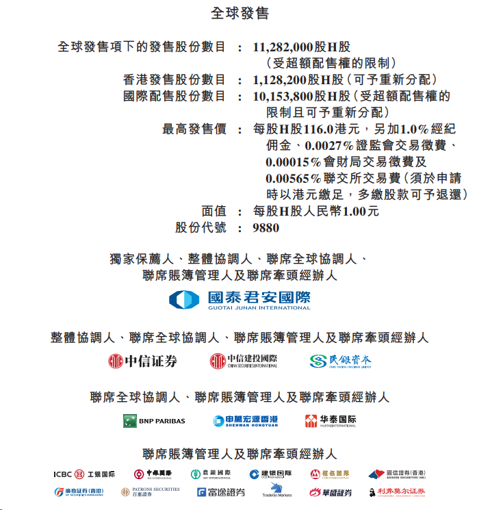 华盛资讯12月19日消息,优必选 $09880.HK 发布公告,于2023年12月19日至2023年12月22日招股,该公司拟全球发售1128.2万股。每股发售价86-116港元,每手50股,预期公司股份将于2023年12月29日上市。前往新股中心,申购新股>>