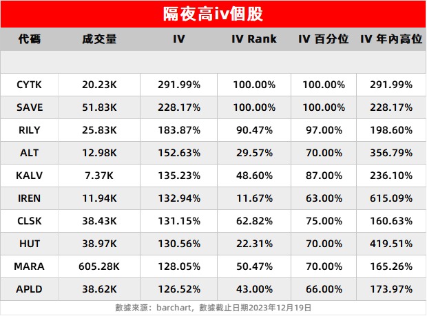 2、Marathon Digital $MARA 隔夜涨10.51%。当前隐含波动率达到128.05%,iv百分位70%。