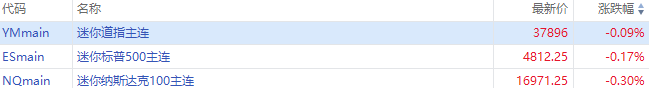 华盛资讯12月20日消息,美股三大期指盘前走弱,截至发稿,纳指期货 $NQmain 跌0.3%,标普500指数期货 $ESmain 跌0.17%,道指期货 $YMmain 跌0.09%。