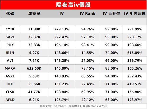 2、Marathon Digital $MARA 隔夜涨0.59%,盘中一度涨超9%。当前隐含波动率达到145.09%,iv百分位88%。