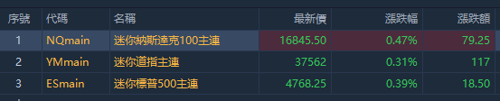 周四美股盘前,三大股指期货走强,截至发稿,纳指期货 $NQmain 现涨0.47%,标普500指数期货 $ESmain 涨0.39%,道指期货 $YMmain 涨0.31%。