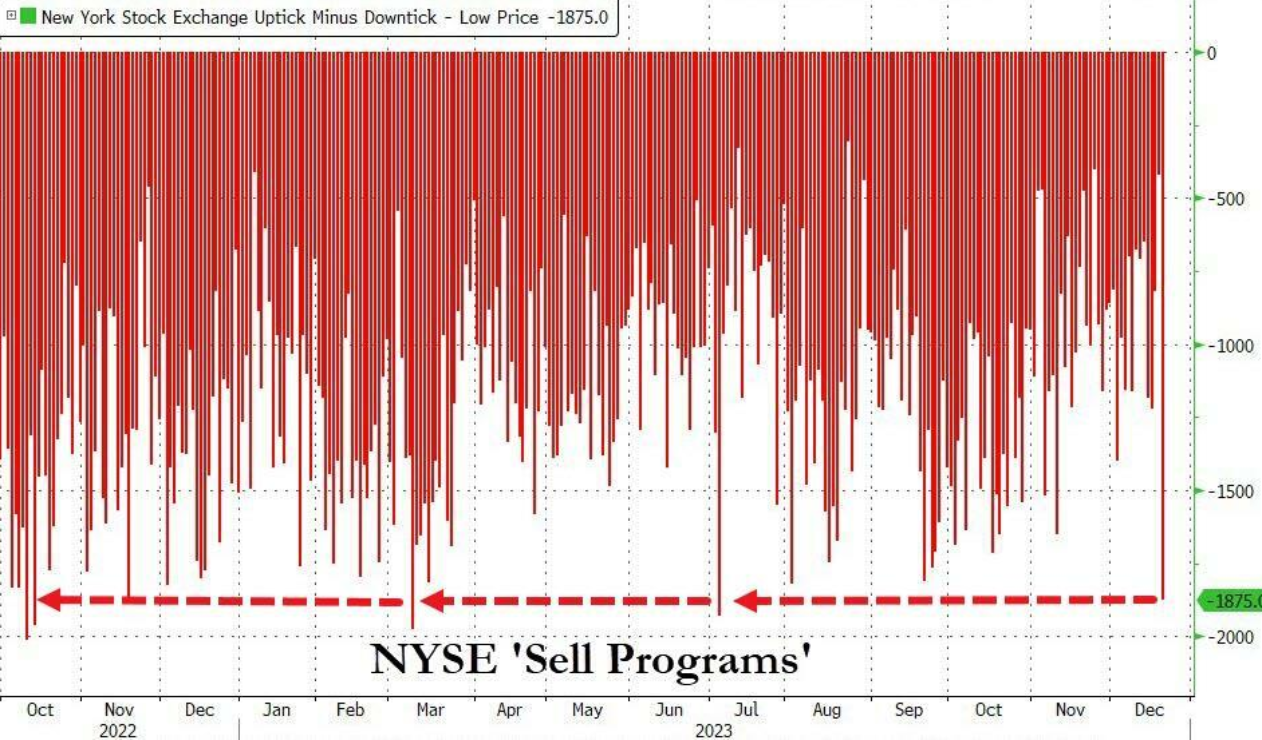 无论是什么催化了卖盘,对于那些期待标普500指数创下新历史高点的多头而言,结果是痛苦的:昨晚纽约证交所上演的是自7月以来最大的卖盘计划之一,也是多年来最大之一。