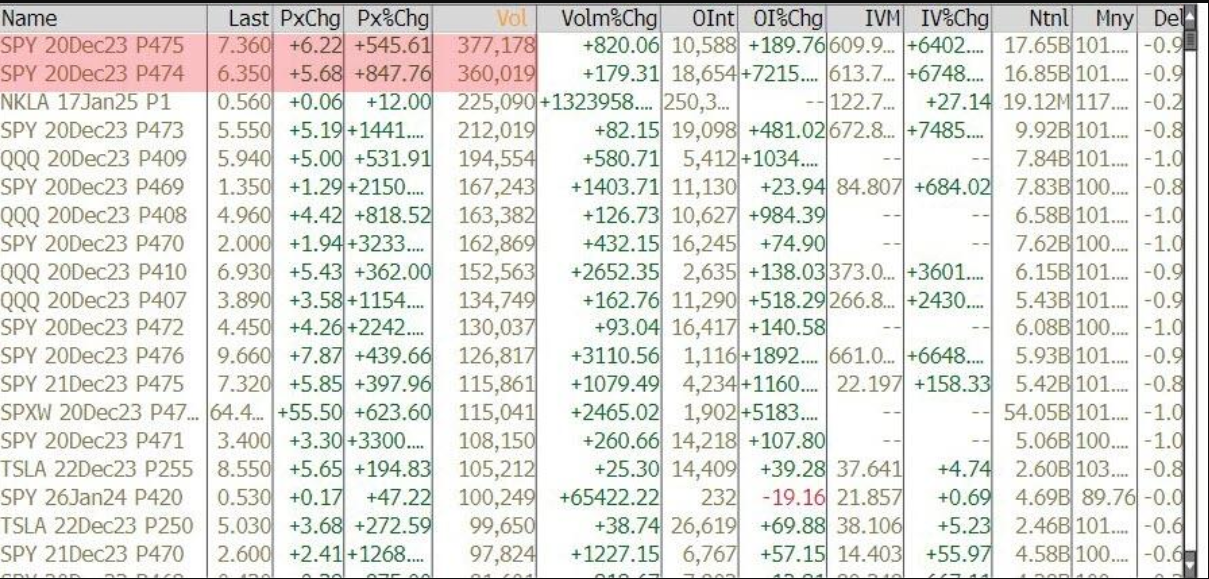 如下所示,SPY 475 0DTE Put是当天交易最活跃的期权。