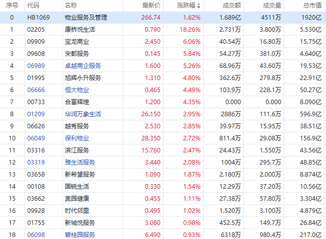 华盛资讯12月21日消息,港股内房股、物管股今日再度上扬。物管股方面,截至发稿,宝龙商业涨超6%,旭辉永升服务、恒大物业、合富辉煌涨超4%,华润万象生活、越秀服务、保利物业、雅生活服务等涨超2%,新希望服务、碧桂园等跟涨。