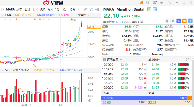 1、加密货币行情火爆,MARA斥资收购多个比特币采矿场,周内暴涨20%