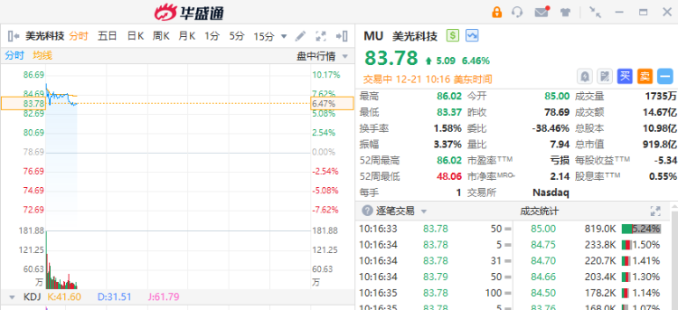 美光科技绩后涨超6%,公司最新指引强于预期,带来了内存芯片市场可能加快复苏的好消息。