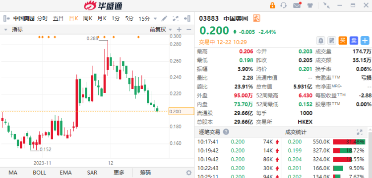 今年9月,中国奥园在港股市场成功实现复牌。截至12月21日,中国奥园股价报收0.205港元,总市值6.1亿港元。