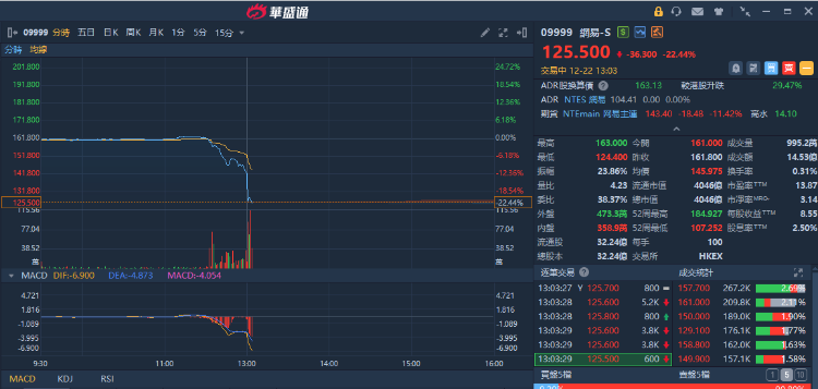 游戏股盘中重挫,截至发稿,网易-S跌超22%;腾讯控股跌超13%;哔哩哔哩跌超10%;IGG跌10%;中手游跌9%。