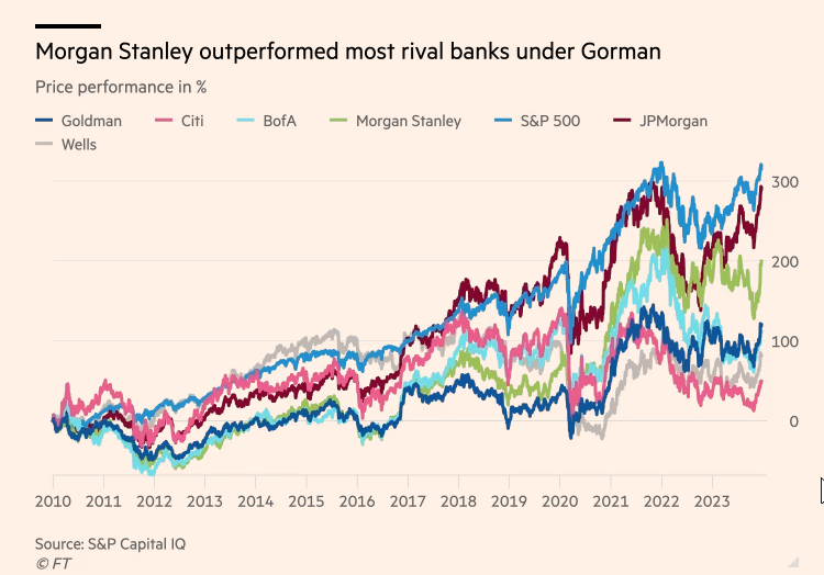摩根士丹利在戈尔曼的领导下领先于大多数华尔街投行