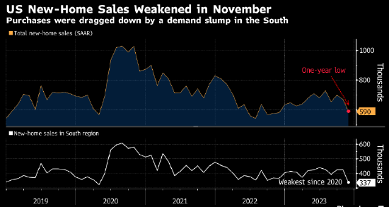 美国11月份新屋销售意外下滑,南部地区领跌,表明房地产市场的复苏道路崎岖不平。
