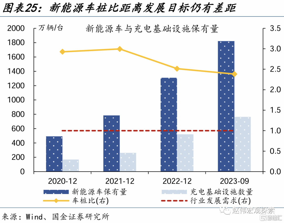 政策重点扶持下,“新能源”、“新基建”等投资仍有增长空间。2023年1-9月,我国新能源车桩比2.4:1,距离“2025年车桩比2:1、2030年1:1”的目标仍有较大差距。此外,今年以来政策对于“新能源、新基建”的支持力度仍在加码,中央经济工作会议部署产业升级、“数据要素”行动计划提出20%增速目标,未来相关领域投资或将保持快速增长。