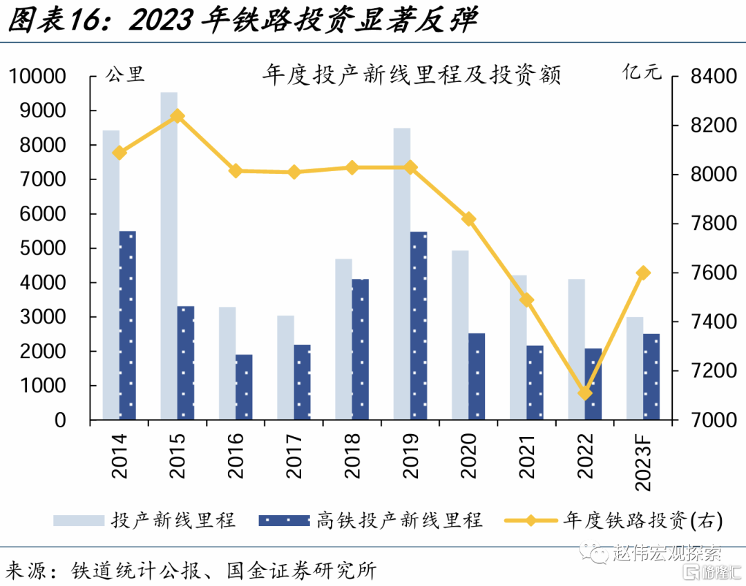 铁路投资显著增长,与“十四五”项目加快建设有关。重点项目加快推进下,今年计划投产高铁新线里程显著增长,计划完成铁路固定资产投资7600亿元、同比增长7%。按照规划目标,预计2025年全国铁路、高铁营业里程分别达16.5、5万公里,对应未来两年铁路、高铁年均投产新线里程分别为3550、2750公里,仍将为铁路投资提供有力支撑。
