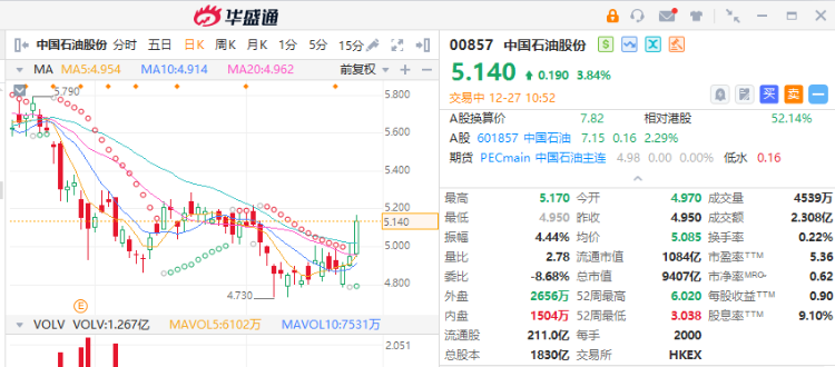 石油股普涨,截至发稿,中石油 $00857.HK 涨3.84%,报5.14港元;中国海洋石油涨超3%,中国石油化工股份涨超1%。