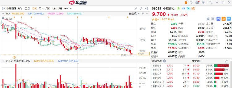 操作建议:可于现价9.70港元附近吸纳,中长线可见13.70港元,有41%上升空间,跌穿8.30港元止蚀。