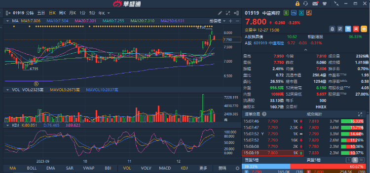 今日港股航运板块全线回调,在恒指上涨的背景下,逆市领跌。