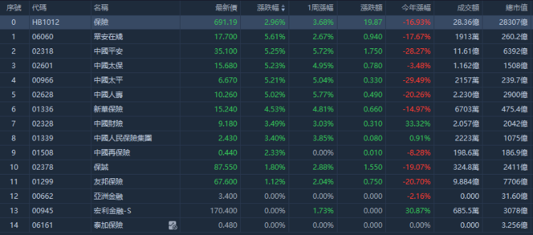 内险股走高,截至发稿,众安在线涨5.61%、中国平安,中国太保,中国太平和中国人寿均涨超5%、新华保险涨超4%。