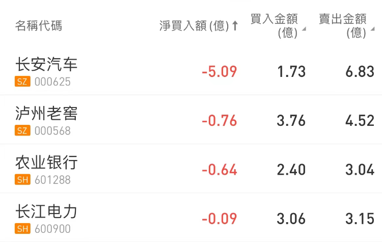 北向资金买入隆基绿能,沽出长安汽车