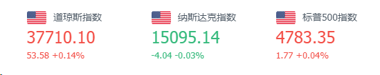 美股三大指数周四涨跌不一,道指涨0.14%,连续两日刷新收盘历史高位;标普500指数涨0.04%,继续逼近去年1月3日所创的收盘历史高位;纳指跌0.03%。