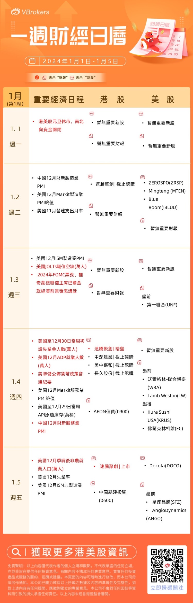 编者按:周一,港股、美股市场休市;周四美联储公布货币政策会议纪要;周五将要公布12月非农就业数据;港股新股方面,“激光雷达第一股”速腾聚创周五上市>>