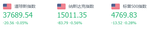 周一(2024年1月1日),美股因元旦休市。上周五(12月29日),美股三大指数小幅收跌,道指跌0.05%,纳指跌0.56%,标普500指数跌0.28%。但全周来看,三大股指均实现连续第九周上涨,并在12月份、第四季度和2023年录得较大涨幅。道指、纳指均创下自2019年以来最长的单周连涨纪录;标普500录得2004年以来最长的单周涨幅。2023年全年,道指累计涨13.7%,纳指涨43.4%,标普500涨24.2%。