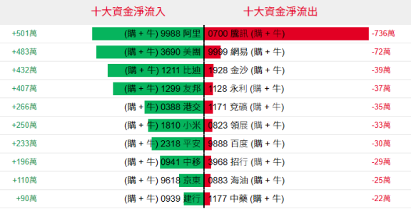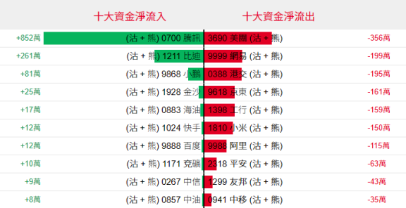 淡仓(认沽证及熊证)方面,周二腾讯淡仓单日获852万港元资金净流入,美团相关好仓单日遭356万港元资金净流出。