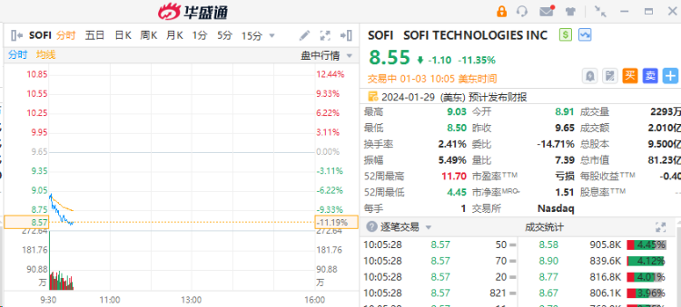 SoFi Technologies $SOFI 开盘后跌幅超11%。消息上,此前Keefe, Bruyette & Woods(KBW)分析师将SOFI的评级从与市场持平下调至跑输大市。分析师于一份降级报告中表示:SoFi的股价仍备受争议,最终有可能在4Q23/2024年实现(并维持)盈利;但这一结果的下行可能性大于上行可能性,在溢价估值的情况下,我们的立场将变得更加谨慎。