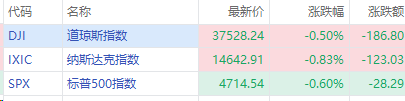 截至发稿,纳指跌0.83%,标普500指数跌0.60%,道指跌0.50%。
