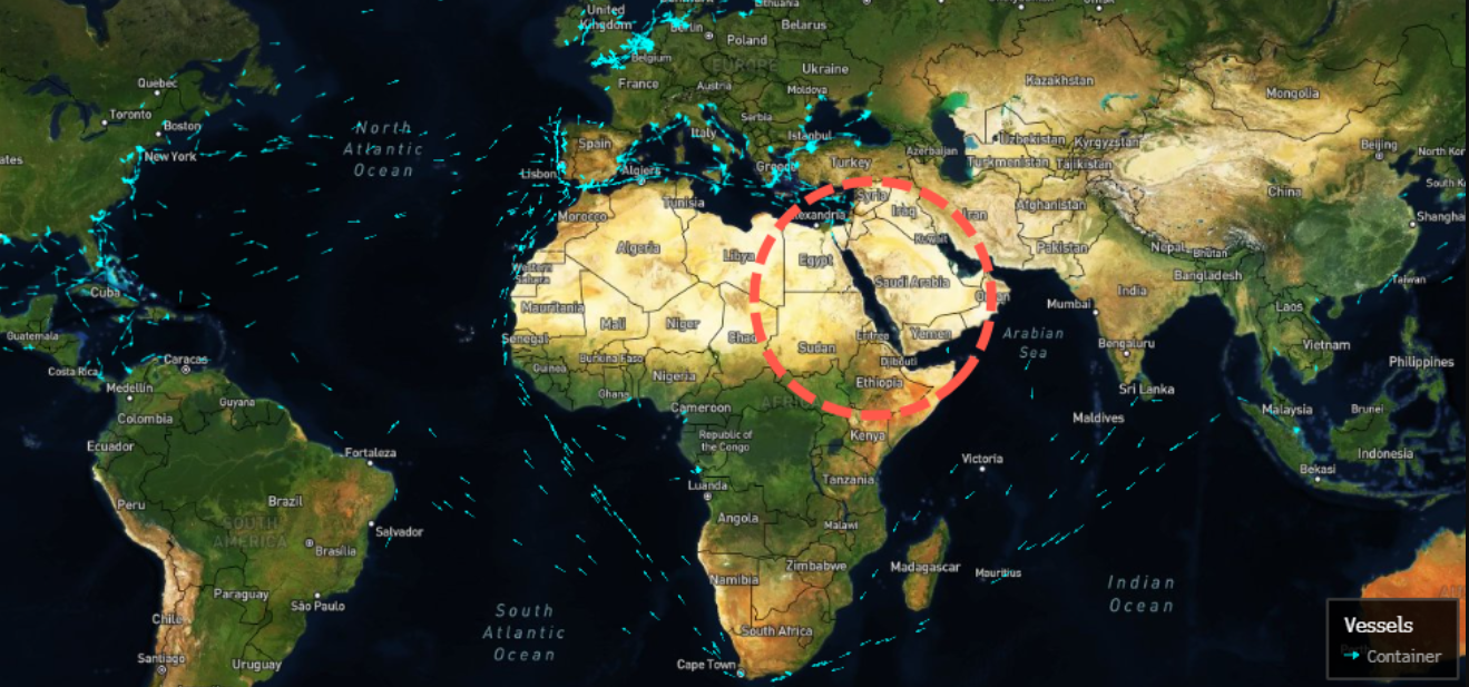 周三上午,彭博社观点专栏作家哈维尔·布拉斯(Javier Blas)在社交媒体平台X上发布了一张地图,地图上显示,没有一艘前往北美和欧洲的集装箱船经过红海。