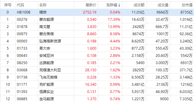 1月5日,部分煤炭股强势,截至发稿,蒙古能源涨超17%,南戈壁涨近14%,蒙古焦煤涨近9%,易大宗涨超3%,兖煤澳大利亚、兖矿能源等跟涨。