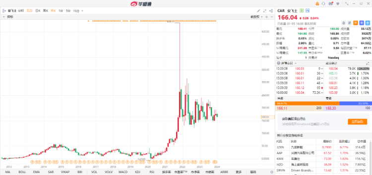 涨幅第六的是安飞士Avis(CAR.US),自2008年以来涨超232倍,目前市值为60亿美元。公司成立于1946年,最初是在机场开设的汽车租赁业务,主要服务于旅游行业。