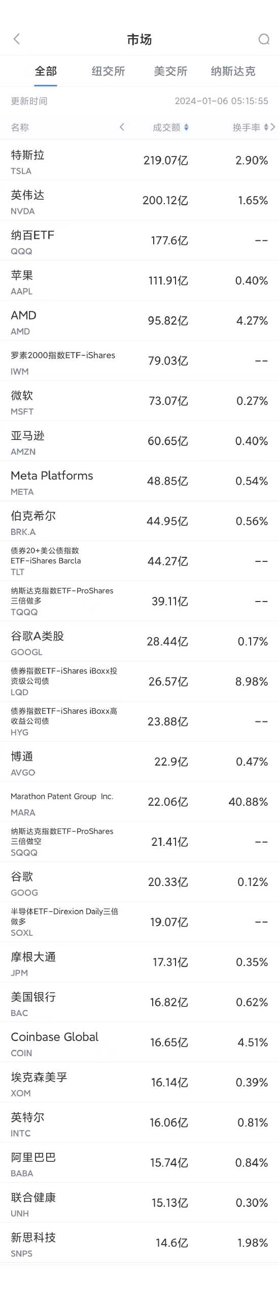 第2名英伟达收高2.29%,成交200.12亿美元。英伟达首席执行官黄仁勋被英国《经济学人》杂志评为“2023 年最佳 CEO”,并称赞其在人工智能领域取得了巨大成功。