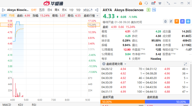 Akoya盘前涨超15%,该公司在最新公告中称,预计第四季度的营收规模将在2550万美元至2650万美元之间,而上一年同期约为2120万美元。对于2023年全年,该公司预计营收规模将在9560万美元至9660万美元之间,而上一年全年的总营收约为7490万美元。