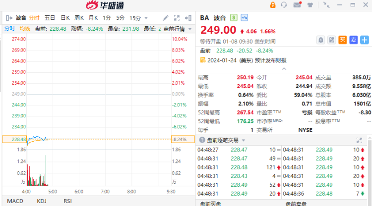 波音盘前跌超8%,美国阿拉斯加航空的一架波音737 MAX 9客机在飞行途中有部件及窗户松脱,美国联邦航空管理局下令停飞同款171架客机。全球多家航空公司对波音737 Max 9机型停飞检查。