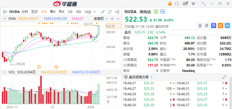 1、英伟达推出新型芯片,股价大涨6.5%创历史新高