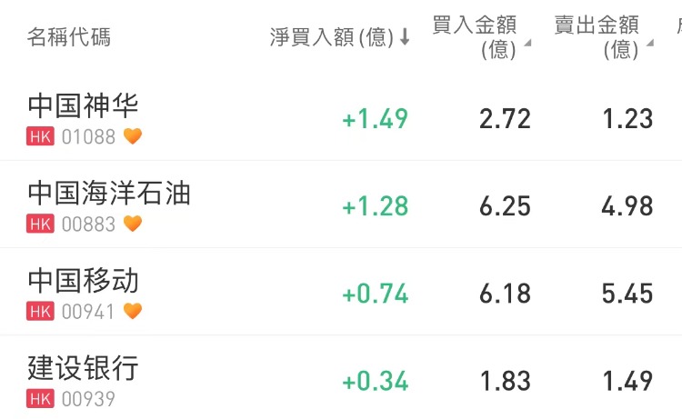 南向资金买入中国神华,沽出盈富基金