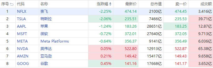 华盛资讯1月9日消息,美股早盘,明星科技股多数下挫,截至发稿,奈飞、特斯拉跌超2%,苹果跌超1%,微软、Meta跟跌;英伟达、亚马逊、谷歌微涨。