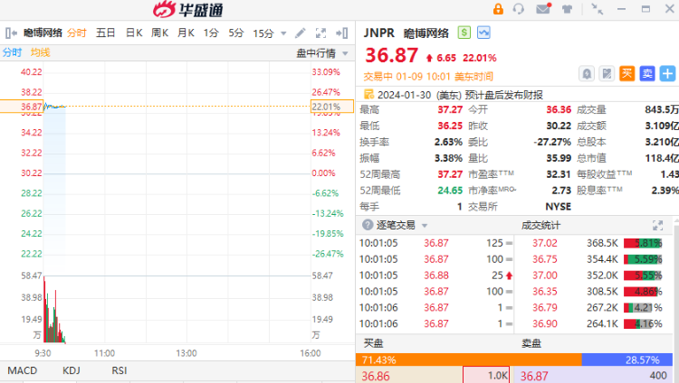 瞻博网络涨超22%,消息面上,慧与科技正就以约130亿美元收购瞻博网络进行深入谈判。据悉,这笔交易最早可能在本周达成。